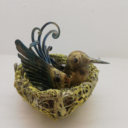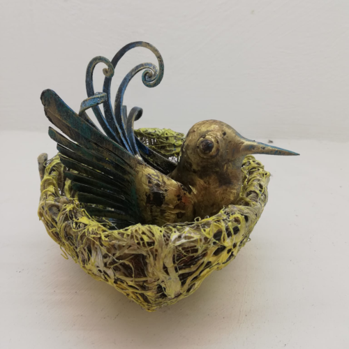 FERRUCCIOZILLI(1951).LivesandworksinCavallino.Hegraduated fromtheArtSchoolofLecce,attendedtheAcademyofFineArtsinthe sculpturecourse. Theinnovativeprojectwasbornfromtheexperiencein theworldofwork:"LaTerradiMezzo",aworkshopbornfromthe combinationofideasandprojects,aimedatenhancingmanualskillsand creativity."LaTerradiMezzo"isanewwayofseeingandexperiencing metal.Anancientandatthesametimecontemporarypath,ofcolorand originalideas.Fortheinspirationoftheworkshefeedsonthecolors andshapesofhisnativeland,whichishismuse.Theproductsobtained speakapracticalandemotionallanguagecapableofcontainingthe treasuresofitsterritoryandpromotingallformsofactivityaimedat favoring the development of the local reality.